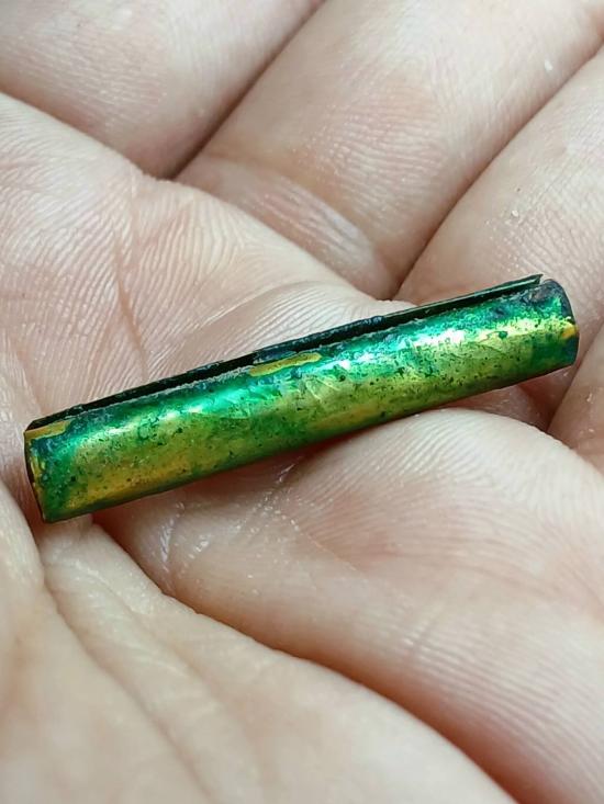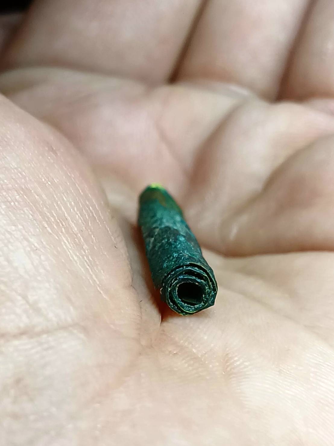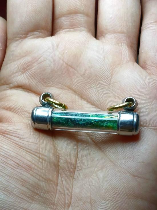 ตะกรุดสาริกาสีผึ้งเขียว เนื้อทองเหลือง หลวงพ่อทาบ วัดกระบกขึ้นผึ้ง จ.ระยอง +เลี่ยมปลอกพร้อมใช้