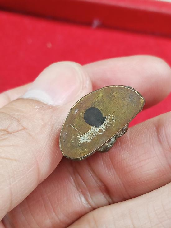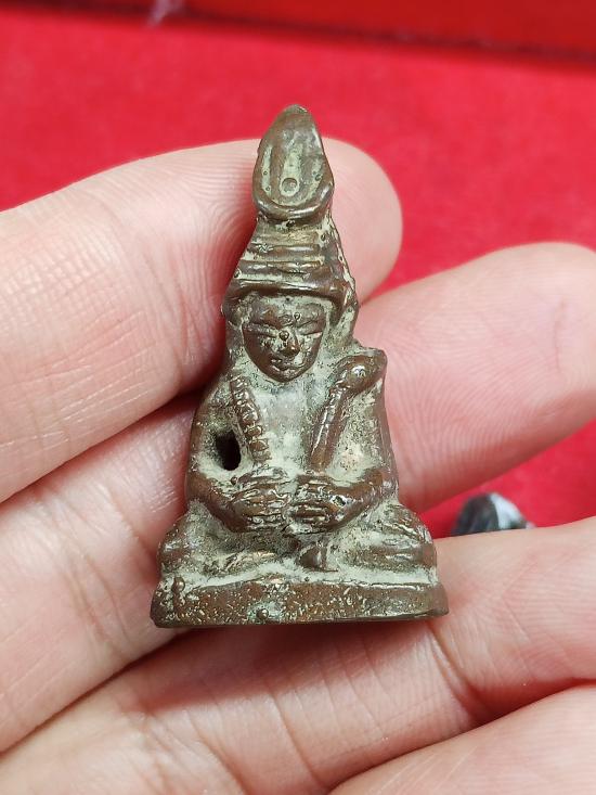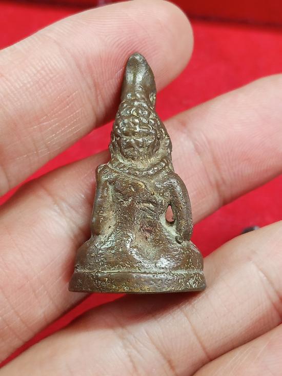 พระอุปคุต พิมพ์หมวกฤาษี ถือดอกบัว หล่อโบราณ เนื้อทองผสม มีอุดกริ่งใต้ฐาน |