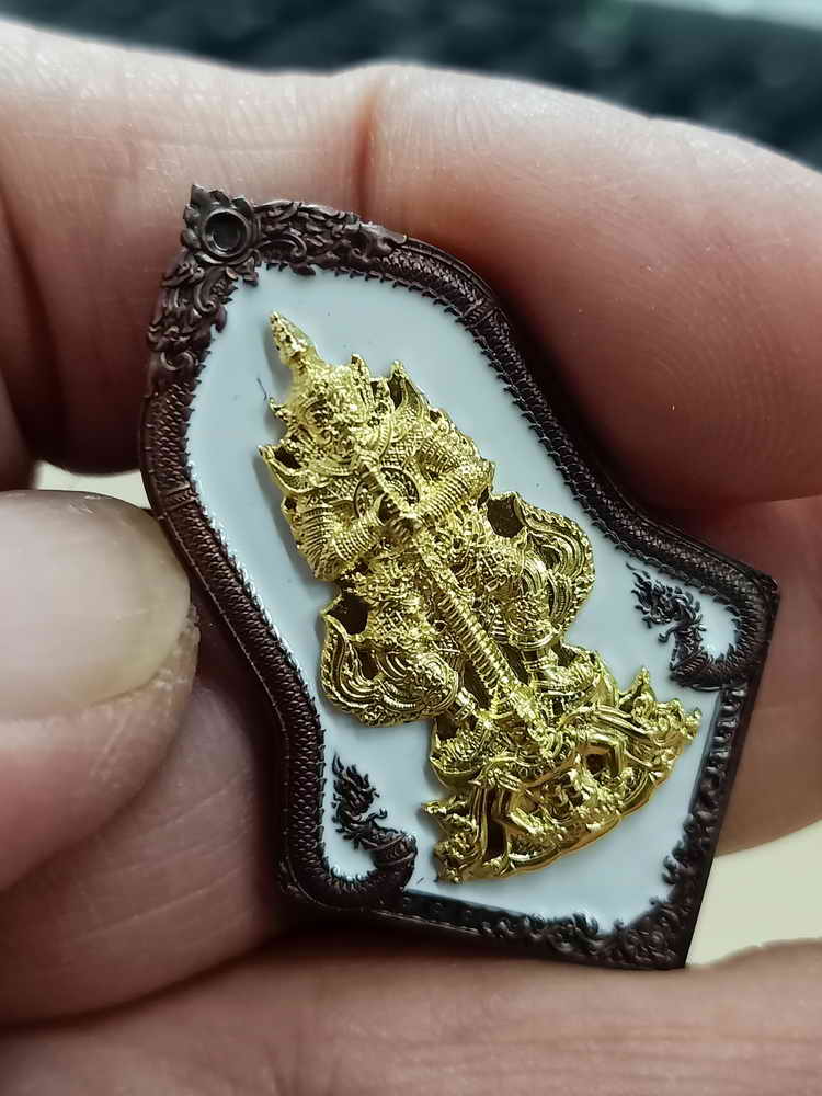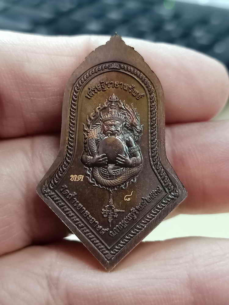 วัดใจ 100 เหรียญจำปีท้าวเวสสุวรรณ เศรษฐีราชาทรัพย์ วัดถ้ำเขาชะอางค์ กาญจนบุรี 2568 ทองแดงมันปู ลงยาขาว หน้ากากชุบทอง หมายเลข 3 สร้าง 9 กล่องเดิม