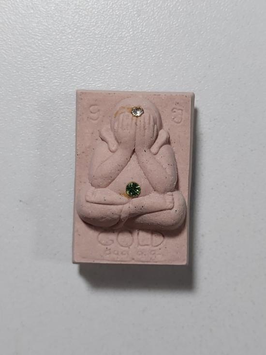 พระปิดตาทองแสนแท่ง เนื้อชมพู ฝังพลอย เนื้อนี้ไม่ได้ออกให้บูชาครับ ต้องไปวัดตอนท่านแจกถึงจะได้ รับกับมือท่านครับ ออกพร้อมพระบูชาเปิดบาตรรับทรัพย์-ก้าวหน้าครับ