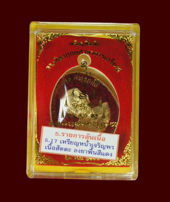 เหรียญเจริญพรเลี่อนสมณศักดิ์ หน้าเจริญพร เนื้อสัตตะลงยาแดง สร้างน้อย 380 เหรียญ หมายเลข *376*หลวงพ่อทองสุข วัดหนองฆ้อ ระยอง พร้อมกล่องเดิมจากวัด ( ขนาดความสูง 4.3 ซม. กว้าง 3 ซม. ) |
