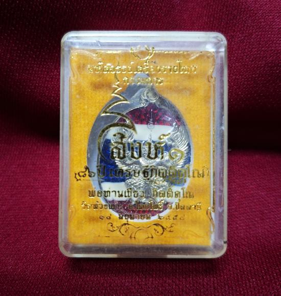 เหรียญพญาครุฑยุดนาค หลังสิงห์ป้อนเหยื่อ ลงยาลายธงชาติ พ่อท่านเขียว วัดห้วยเงาะ -- แยกชุดกรรมการ สร้างเพียง 186 ชุด -- เหรียญนี้เลข 138