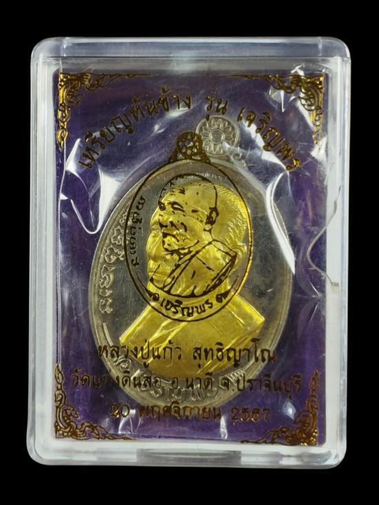 เหรียญเจริญพร หลวงปู่แก้ว วัดแก่งดินสอ อ.นาดี จ.ปราจีนบุรี เนื้ออัลปาก้าหน้ากากทองทิพย์ สวยมากๆกล่องเดิม 100 แดงครับ |