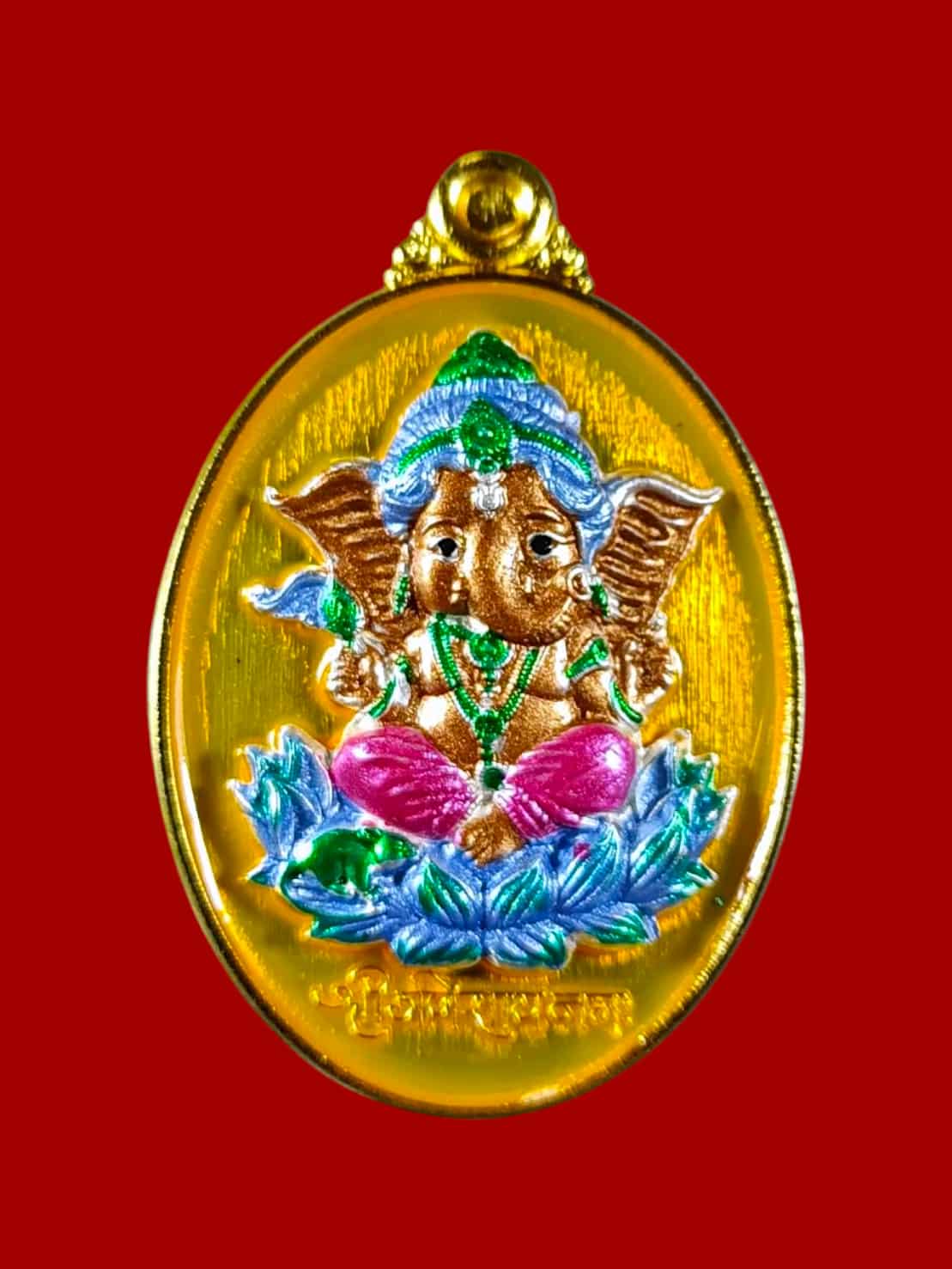 **ทีเด็ด..ล้มมวย!! ทุนมา4,500บาท เหรียญพุทธศิลป์พระพิฆเนศ วัดสนามชัย อ่างทอง เนื้อชุบทองลงยาเหลือง หลังโอมห์เรืองแสงหน้ากากชุบเงินเพ้นท์องค์ [no.๑๑๑๑] เลขแม่ทัพ สร้างแค่ 10 เหรียญเท่านั้น ตอกเลข4หลัก |