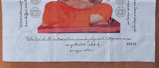 ผ้ายันต์หลวงพ่อ พระมหาสุรศักดิ์ วัดประดู่ (พระอารามหลวง) จ.สมุทรสงคราม หมายเลข 05874 ปี 57 ปั๊มตราวัด ขนาดกว้าง 12 นิ้ว ยาว 12 นิ้ว