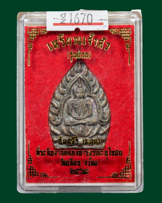 เหรียญหล่อเจ้าสัว หลวงปู่สมศรี อัตตสิริ วัดป่าเวฬุวนาราม จ.เลย เนื้อทองแดง ออกวัดเลียบ เลข 1670 |