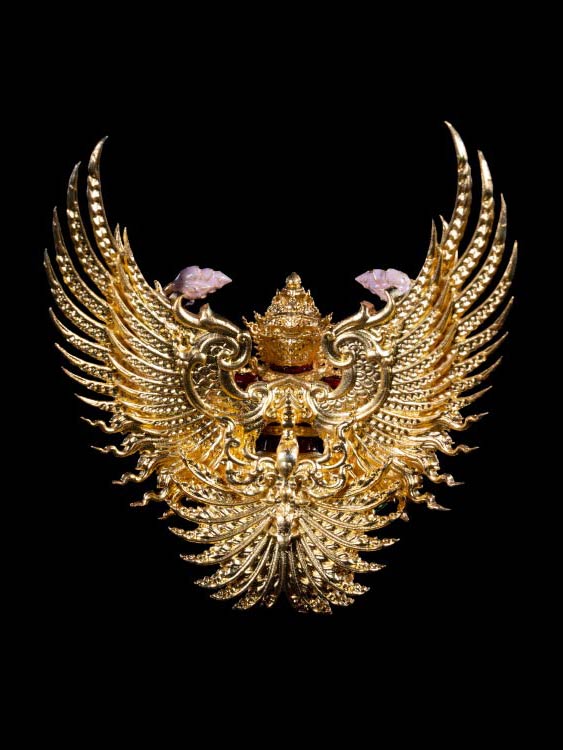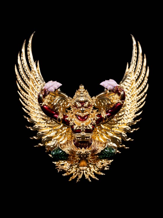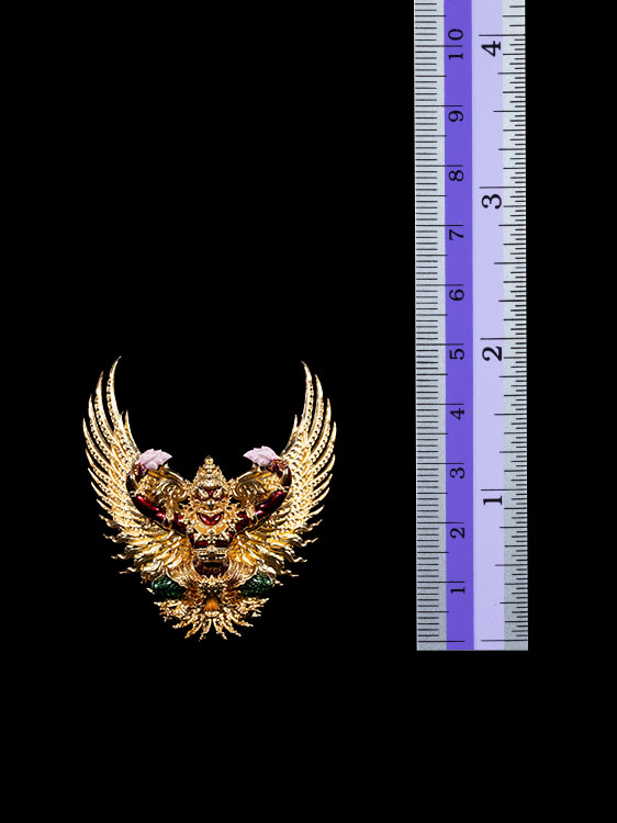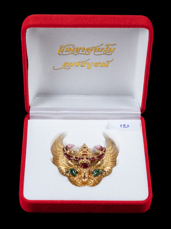 พญาครุฑสัตตบุษย์ สร้างเขื่อน พระอาจารย์ตี๋เล็ก ( พระครูสมุห์พินิต ปัญญาสาโร ) วัดเขาสุนะโม จ.เพชรบูรณ์ เนื้อบรอนซ์ชุบทองลงยา กล่องเดิม