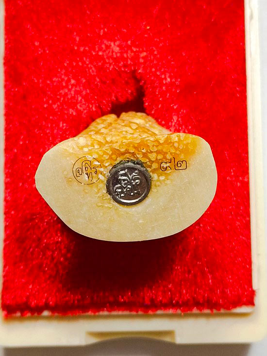 " วัดใจ เคาะเดียวแดง " พระปิดตามหาโชค จันทสาโร หลวงปู่หลิน จันทสาโร สำนักสงฆ์ภูกระจ้อน จ.มุกดาหาร ปี 2562 เนื้อกระดูกช้าง ฝังหมุดตะกั่วอวน อุดกริ่ง (เขย่ามีเสียง) หมายเลข 92