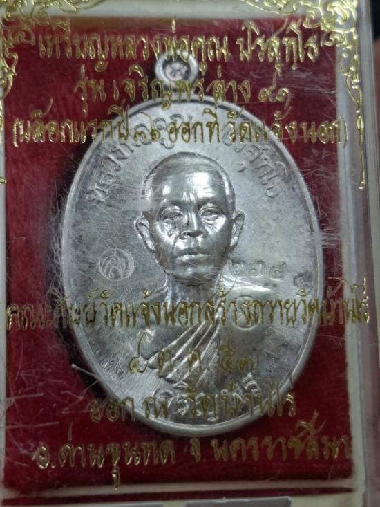 !!เคาะเดียวแดง เหรียญหลวงพ่อคูณ เจริญพรล่าง 91 เนื้อเงิน เลข 2344 พร้อมกล่องเดิมครับ
