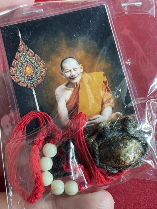 เบี้ยแก้ หลวงปู่ศิลา พร้อมสายข้อมือแดง และ ใบฝอย ปี 2566