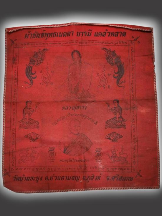 A5095.ผ้ายันต์พุทธเมตตา บารมี แคล้วคลาด หลวงปู่สรวง พระครูไพโรจน์อินทสาคร วัดบ้านขะยูง ศรีสะเกษ