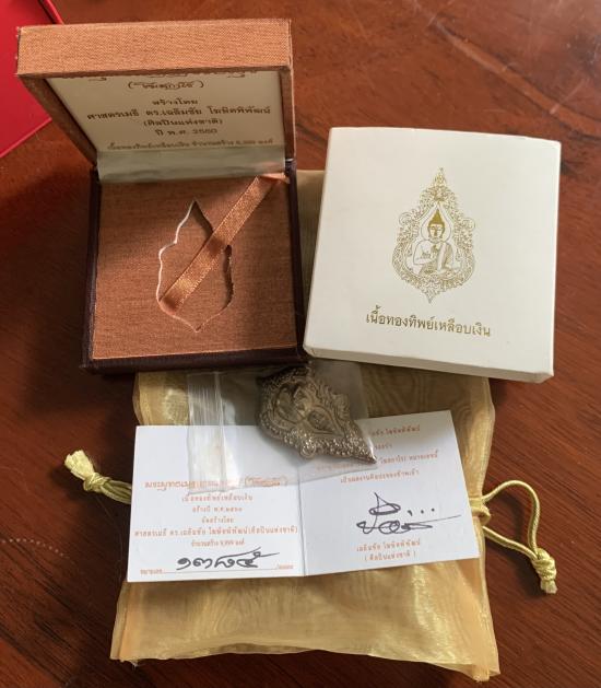 วัดใจ40 ขออนุญาตท่านอาจารย์เฉลิมชัย เหรียญพระพุทธเมตตารวยสุข(โฆสกาโร) เนื้อทองทิพย์เหลือบเงิน หมายเลข 1385 อุปกรณ์ถุงครบ