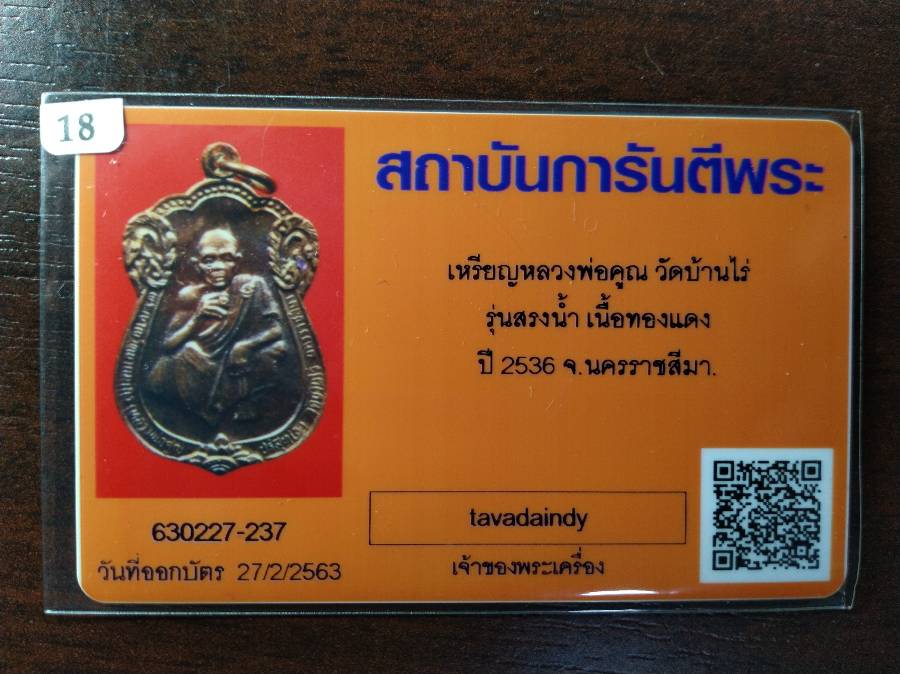 เหรียญสรงน้ำปี 36 หลวงพ่อคูณ วัดบ้านไร่ มีบัตรการันตีพระ
