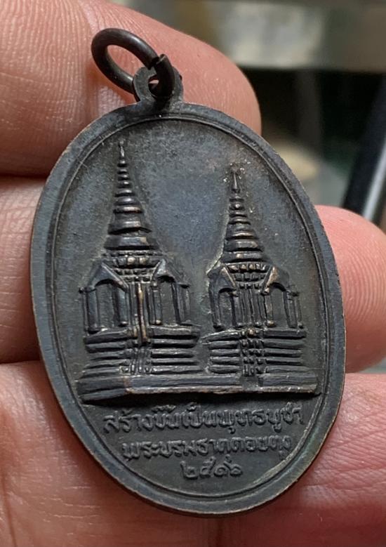 เหรียญในหลวง รัชกาลที่ 9 ทรงผนวช หลังพระธาตุดอยตุง ปี พ.ศ. 2516 |