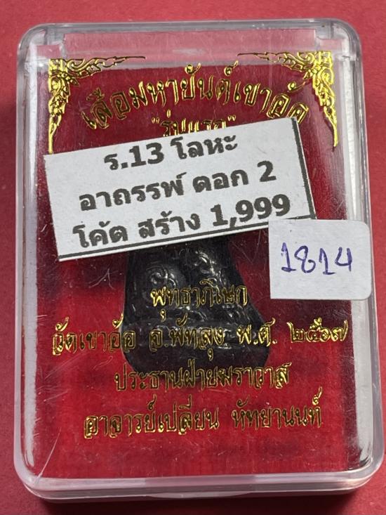 ไม่ใหญ่ไม่เล็ก มียันต์ล้อมรอบตัว ด้านบนกำกับยันต์ นะสามศร ด้านหลังกำกับยันต์นอโม ยันต์อันโด่งดังของสำนักเขาอ้อ และรอบลำตัว ขาหน้า ขาหลัง ฐาน ล้วนบรรจุยันต์มหาอำนาจ และยันต์หัวใจ มนต์ขลังแห่งอำนาจบารมี