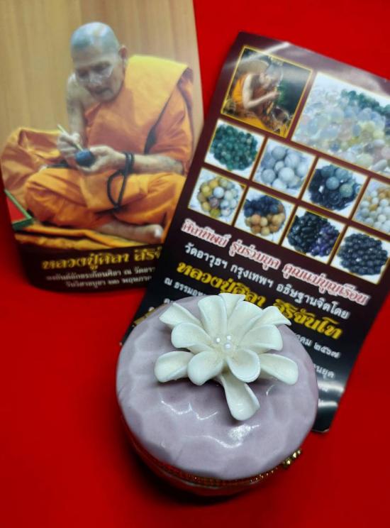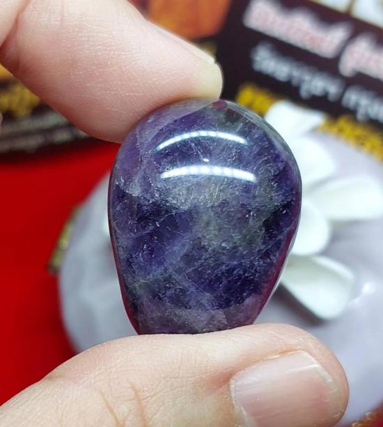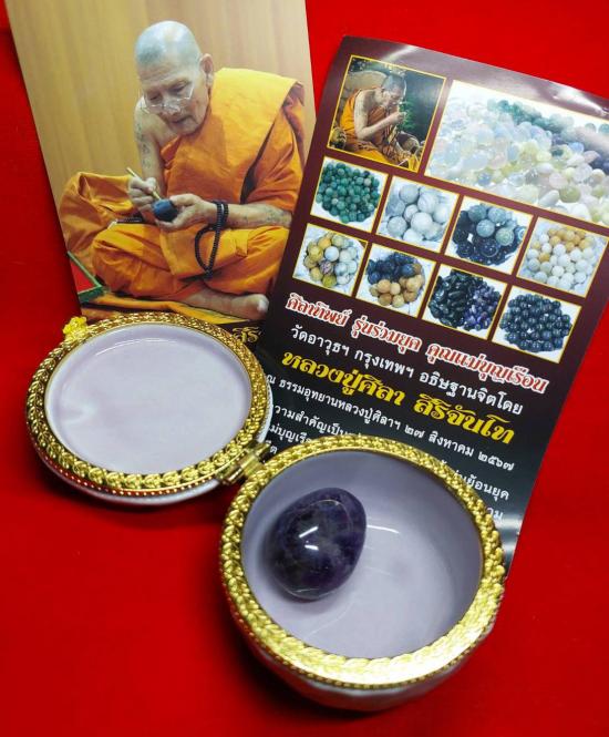 ***วัดใจ***ศิลาทิพย์ รุ่นร่วมยุค คุณแม่บุญเรือน วัดอาวุธฯ หินพลอยสีม่วง อเมทิสต์ (Amethyst) พร้อมตลับใส่เซรามิค Made in japan