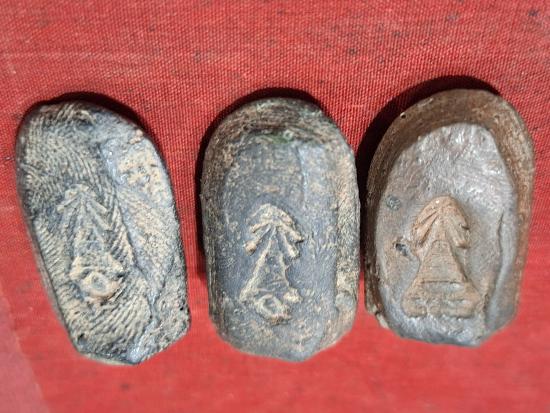 (เคาะเดียวแดง) พระคงลำพูน ด้านหลังปั๊มจมรูปเจดีย์ (เปิดเหมา 3 องค์)ไม่ทราบออกวัดไหน |
