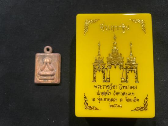 เหรียญที่ระฤกกฐิน เหรียญหล่อพระปิดตาพิมพ์สี่เหลี่ยม เนื้อก้นเบ้าพิเศษ ตอกโค๊ท บ หมายเลข 1573 พระอาจารย์ต้อม วัดท่าสะแบง พร้อมกล่อง |