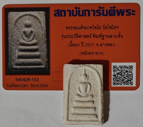 สมเด็จวัดเกศไชโย รุ่นประวัติศาสตร์ ปี2531 จ.อ่างทอง สภาพสวย ไม่เคยผ่านการใช้งาน พร้อมบัตรรับรองพระแท้