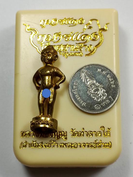 " วัดใจ เคาะเดียวแดง " กุมารแดง เด็กสุสานร้าง รุ่นแรก (สำนักสงฆ์ร้างพระอาจารย์ซ่วน) วัดท่าลาดใต้ จ.ฉะเชิงเทรา ปี 63 เนื้อฝาบาตรขัดเงา หมายเลข 447 (่ขนาดสูงประมาณ 3.5 ซม.) ผิวหล่อไม่เต็ม ไม่เรียบนะครับบางจุดมีคราบดำ บางจุดไม่มีคราบดำจะเป็นหลุม ทั้งหน้า-หลัง เดิมๆมาครับ