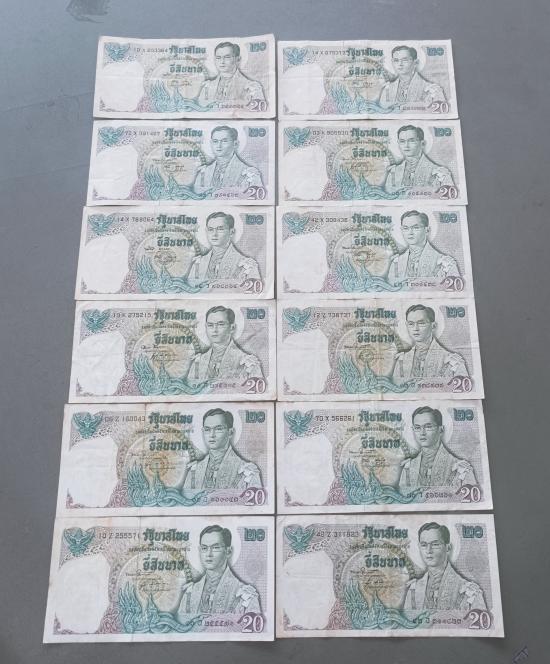 ธนบัตร 20 บาท พระที่นั่งเรืออนันตนาคราช แบบที่ 11 จำนวน 12 ฉบับ ชุดสุดท้าย |
