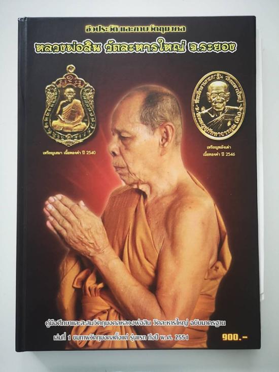 หนังสือชีวประวัติและรวมภาพวัตถุมงคลหลวงพ่อสิน วัดละหารใหญ่ ระยอง ภาพสี จำนวน 208 หน้า
