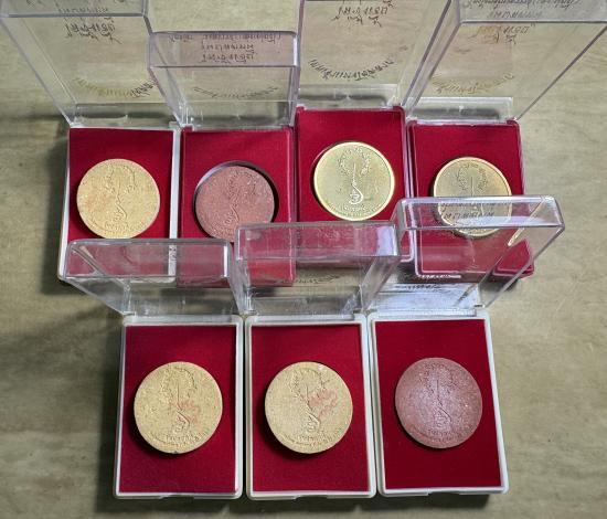 7 องค์ เหรียญเทพเจ้าไฉ่ซิงเอี้ย เทพเจ้าแห่งโชคลาภ พิมพ์ใหญ่ รุ่นปลดหนี้ วัดเล่งเน่ยยี่ ปี 2545 พร้อมกล่องเดิมจากวัด