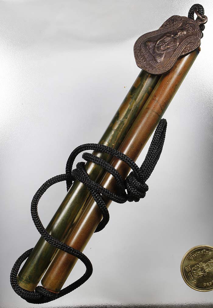 ตะกรุดคู่หุ้มจีวร 5 นิ้ว หลวงปู่เจียม วัดอินทราสุการาม จ.สุรินทร์ + เหรียญเสมา ปี42 พระดีมีประสบการณ์