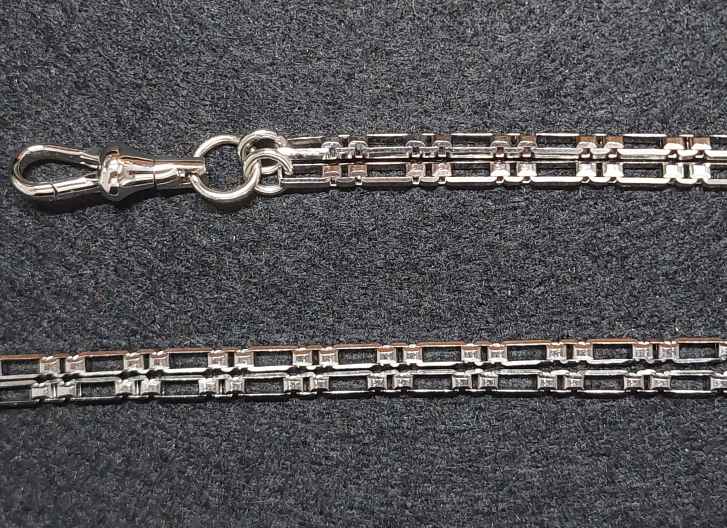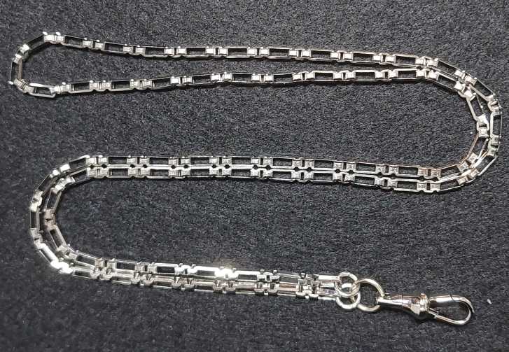 สร้อยสแตนเลสลายโซ่กล่องเล็กยาว ความยาวสร้อย 26 นื้ว พร้อมสปริงก้ามปูสแตนเลสหมุนได้ |