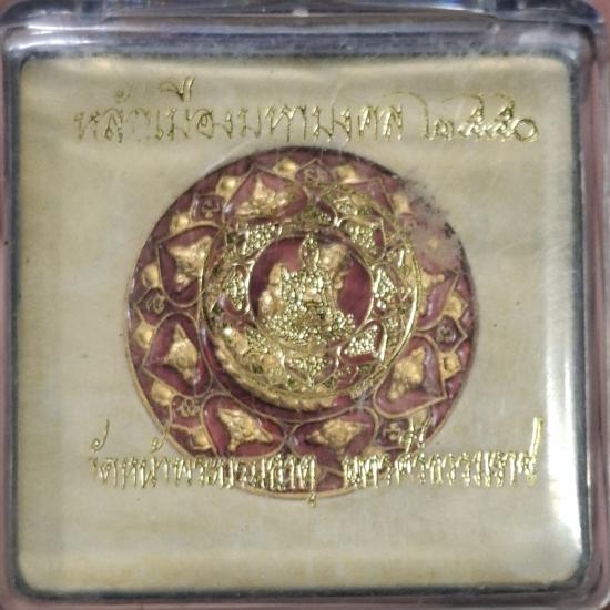 เหรียญจตุคาม รามเทพ เนื้อทองแดงกะไหล่ทองลงยาสีแดง รุ่นหลักเมืองมหามงคล 50 ขนาด 3.2 ซม. พร้อมกล่องเดิม |