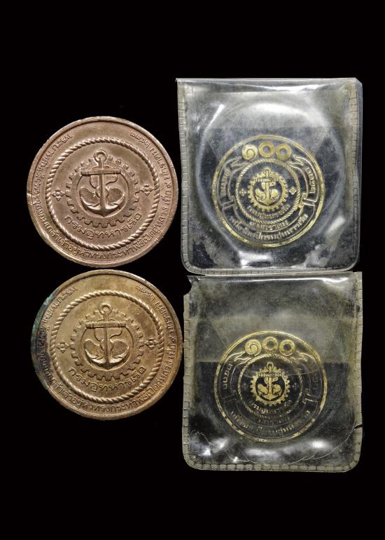 *เคาะเดียว* เหรียญกรมอู่ทหารเรือ 100 ปี กรมอู่ทหารเรือ ปี2533 ((( เนื้อทองแดง ขนาด 4 ซม. ))) 2 เหรียญ |