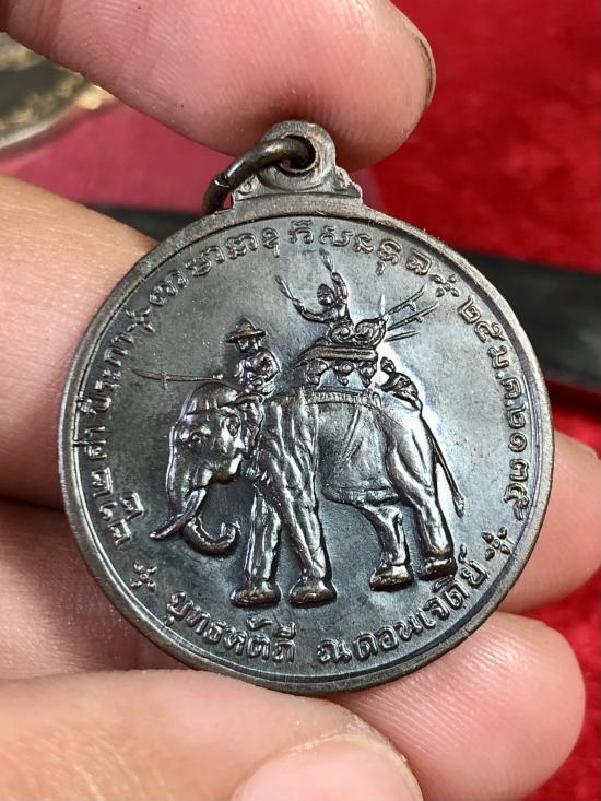 วัดใจ เหรียญสมเด็จพระนเรศวร ยุทธหัตถี จ.สุพรรณบุรี (( บล็อค คอ C นิยม )) เนื้อทองแดง ปี 2513 สภาพสวย ผิวรุ้ง ปลุกเสกพิธีใหญ่ ลพ.มุ่ย ลพ.เงิน ลป.โต๊ะ ร่วมปลุกเสกครับ |