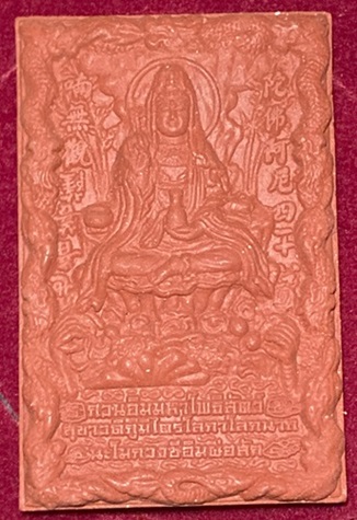 พระผงพระแม่กวนอิมอวโลกิเตศวรหลังพระโพธิสัตว์ (เนื้อแดง) อาจารย์หม่อม นิรนามไตรภูมิ