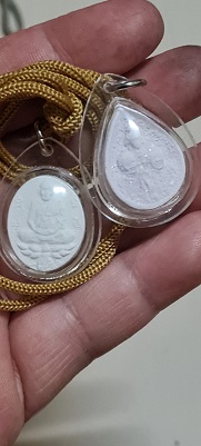 หลวงปู่ดู่และหยดน้ำ พร้อมรอยจารหลวงตาม้า วัดถ้ำเมืองนะประคำขาว เลี่ยมจากวัดพร้อมเชือกร่ม 2 องค์ |