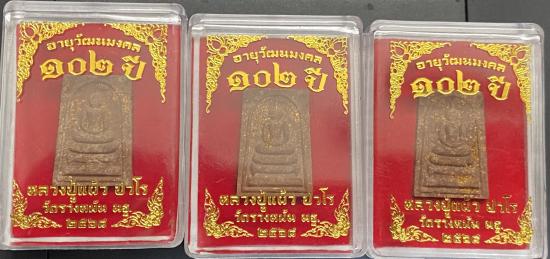 หลวงปู่แผ้ว ปวโร วัดรางหมัน พระผงสมเด็จพิมม์คะเเนน หลังรูปเหมือน ( 3 องค์ )