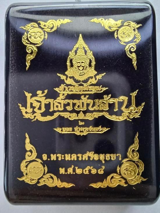 เหรียญท้าวมหาพรหม รุ่นเจ้าสัวพันล้าน(บอย ท่าพระจันทร์) เนื้อฝาบาตรลงยาพื้นส้มขอบน้ำเงิน เลขโค๊ต ๑๗๓๙ พร้อมกล่องเดิม |