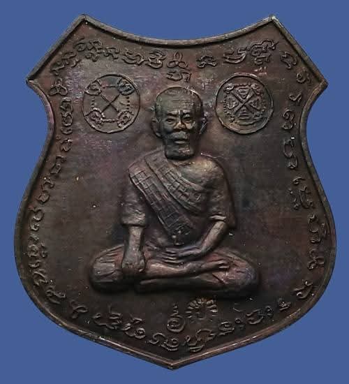 เหรียญอาร์ม "เปี่ยมมหามงคล" เนื้อทองแดงรมดำ พ่อปู่เปี่ยม สาริกบุตร มูลนิธิร่วมกตัญญู จัดสร้าง หลวงพ่อเกษม เขมโก สุสานไตรลักษณ์ จ.ลำปาง ปลุกเสก ปี ๒๕๓๗ กล่องเดิม |