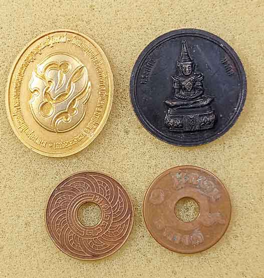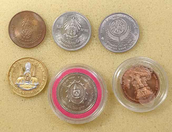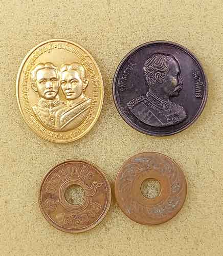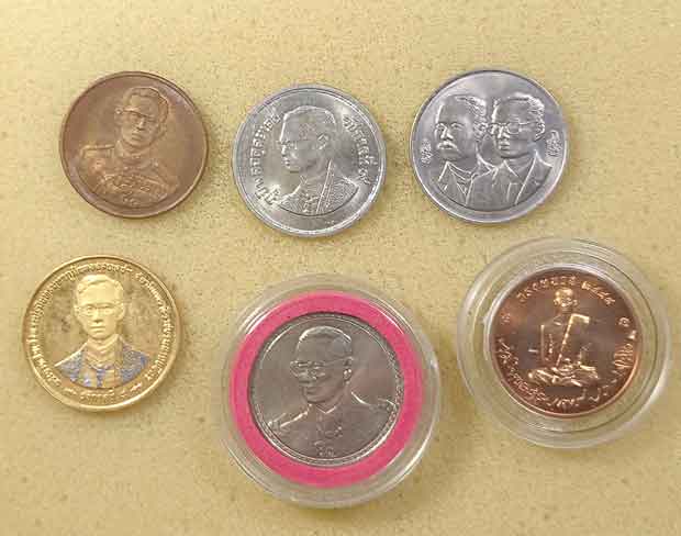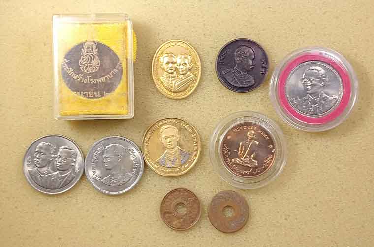 เหรียญร.5 2 เหรียญ + เหรียญร.9 6 เหรียญ + สตางค์รู 2 เหรียญ