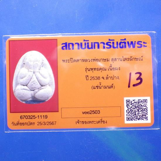 พระปิดตาแช่น้ำมนต์ หลวงพ่อเกษม รุ่นพุทธคุณ ฝังตะกรุดสังฆวานร ปี 2538. ..13.. (68.6.24 |