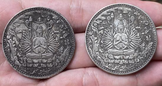 เคาะเดียวแดง 2 เหรียญ เหรียญเจ้าแม่กวนอิมพันมือ เงินผสม