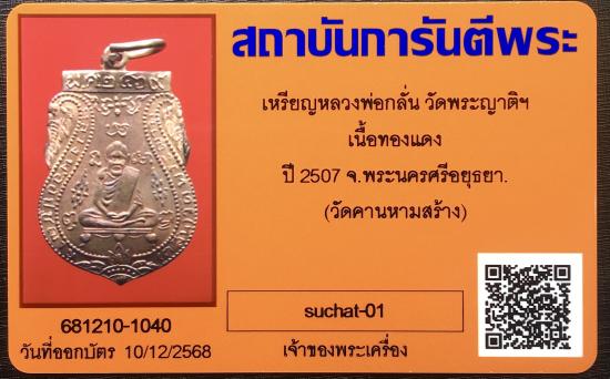 เหรียญหลวงพ่อกลั่น วัดพระญาติฯ เนื้อทองแดง ปี 2507 จ.พระนครศีอยุธยา วัดคานหามสร้าง