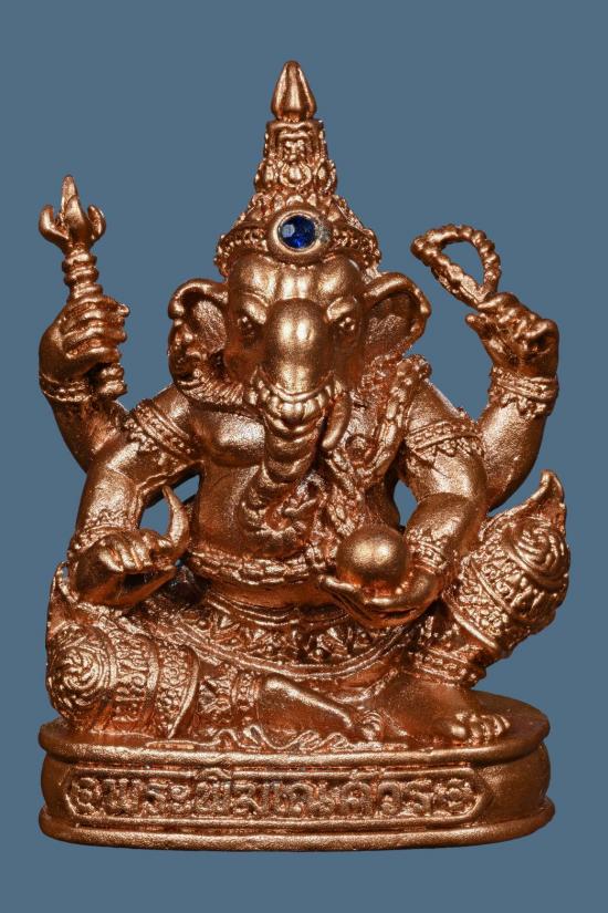 พระพิฆเนศลอยองค์ เทวสถานโบสถ์พราหมณ์ ปี2539 ฝังพลอยไพลิน 1เม็ด ขนาดองค์พระ 1.8 X 2.5 ซม.พร้อมหมายเลขกำกับ สวยๆเดิมๆ พิธีเทวาภิเษกปลุกเสก ณ เทวสถานโบสถ์พราหมณ์ วันที่ 1 ธันวาคม 2539