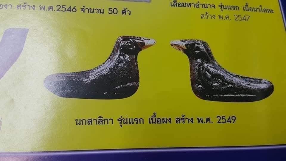 นกสาริการุ่นแรก พระอาจารย์ทอง วัดสำเภาเชย จังหวัดปัตตานี มาเป็นคู่ เนื้อผงใบลานกับเนื้อผงพุทธคุณ ปี 2549 ใช้ได้ดีด้านเจรจาพาทีด้านค้าขาย เจรจาเจื้อยแจ้วจำนัลจา " เรียกลูกค้าเข้าร้าน คุยจากยากเป็นง่าย |