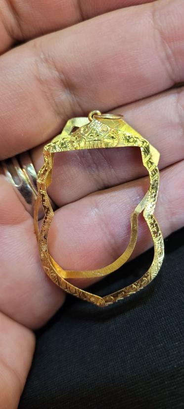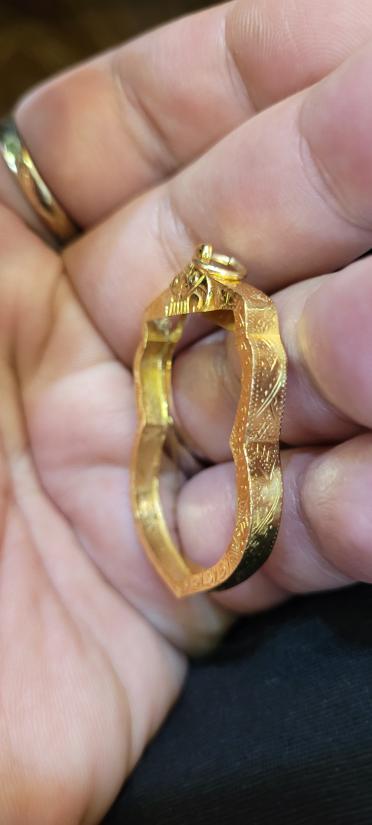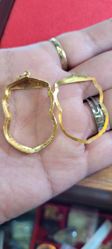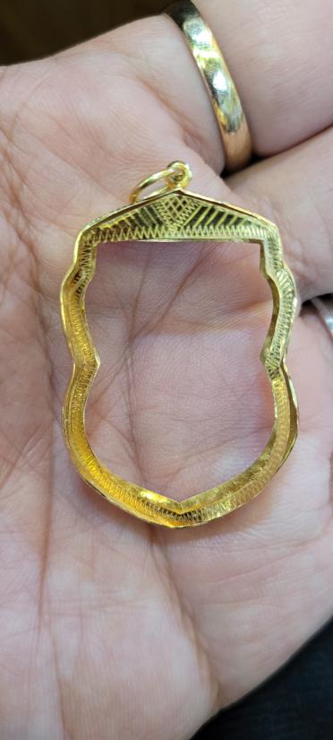 กรอบทองทรงเสมาใส่หลวงพ่อเงินวัดดอนยายหอมมา หนักประมาณ 1.32 กรัม ขนาดประมาณ 1.9 X 2.2x3.0 ซมทองผมตีไว้ไม่เกิน 75% นะครับน่าจะอยู่ประมาณ62-72%วัดขนาดพิจารณาให้ดีจะได้ไม่เสียเวลากันทุกฝ่ายครับ