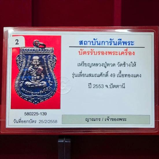 *v*)..ลป.ทวด วัดช้างไห้ ปัตตานี รุ่นเลื่อนสมณศักดิ์ 49 ปี2553 เนื้อทองแดง สวยๆ รุ้งๆ เดิมๆ พร้อมบัตรรับรอง |