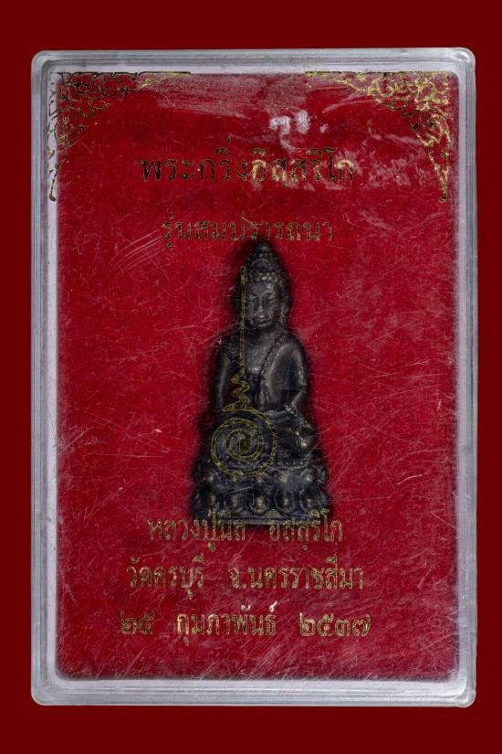 พระกริ่งอิสฺสริโก รุ่นสมปรารถนา ปี 37 หลวงปู่นิล วัดครบุรี จ.นครราชสีมา มีกล่อง ราคา 150 บาท ชมดูก่อนครับ |