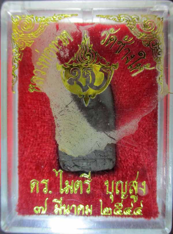 หลวงพ่อทวด รุ่น มบ. ดร.ไมตรี บุญสูง จัดสร้าง พิมพ์พระรอด กล่องเดิม ปี 2544 |