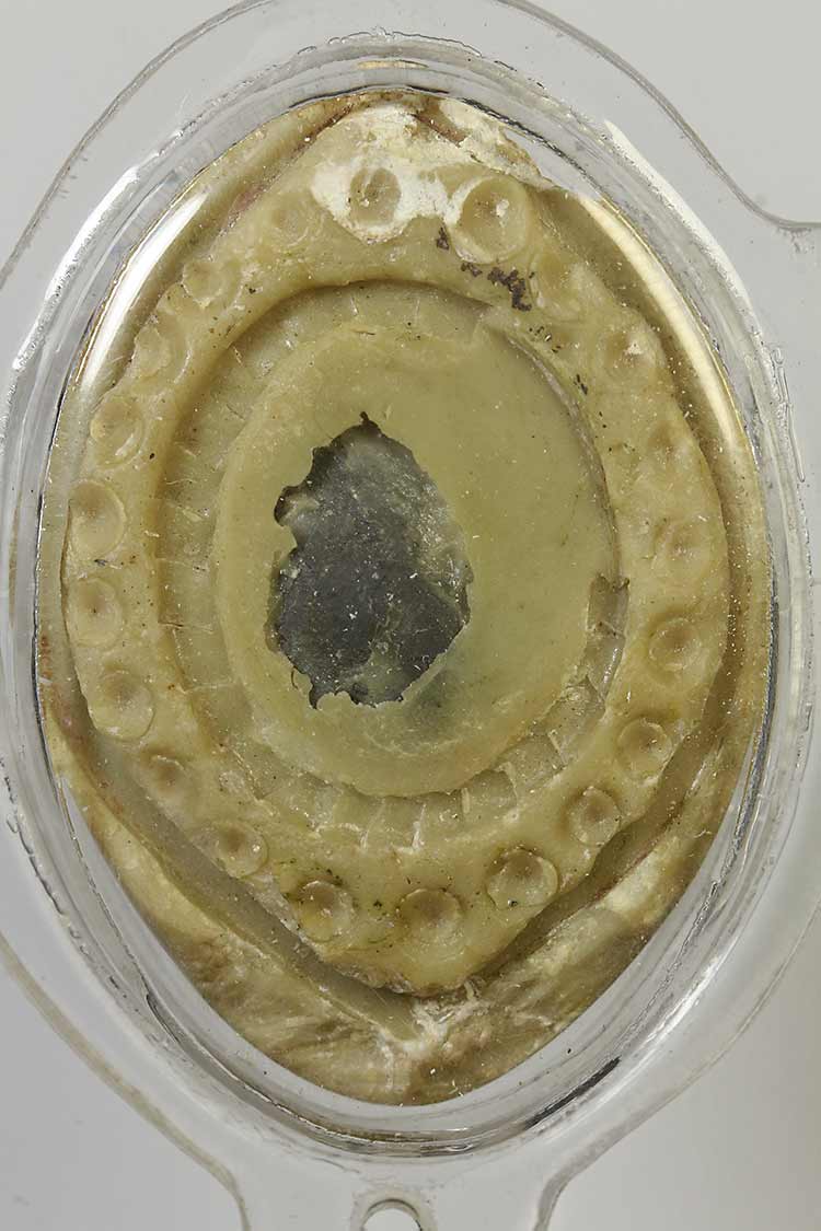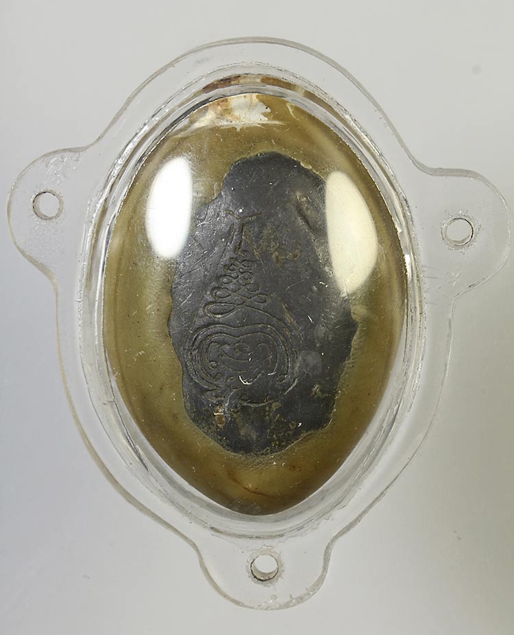 วัดใจ**เครื่องราง เบี้ยแก้หุ้มตะกั่ว*{ มีรอยจาร ปรอทวิ่งอยู่ }*ไม่ทราบที่....ตามสภาพครับ