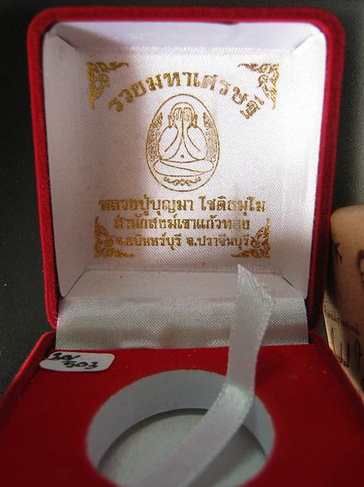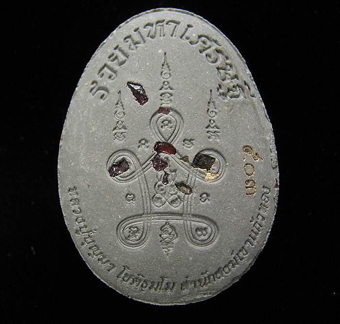 พระผงปิดตา รุ่น "รวยมหาเศรษฐี" หลวงปู่บุญมา โชติธัมโม สนส.เขาแก้วทอง จ.ปราจีนบบุรี เนื้อเทาผงธูปโรยพลอยหน้า/หลัง โค๊ต # 503 กล่องกำมะหยี่เคาะเดียวครับ |