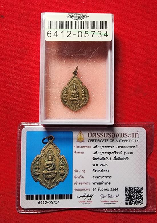 **เคาะเดียวแดง**เหรียญพระสุนทรวารี วัดบางโฉลง เนื้ออัลปาก้า หลวงปู่เผือก วัดกิ่งแก้วปลุกเสก ปี2495 พร้อมบัตรสมาคม |